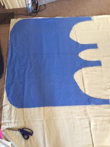 Woo Hoo! I haven’t made a pattern in years!! I decided since this was such a simple old school apron that I would hand stitch it. I also made a smaller pattern and made Edyth a matching apron!! Here she is trying on the plastic pattern lol