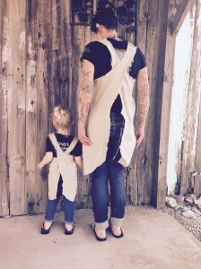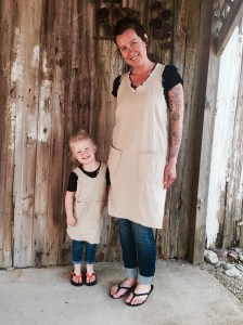 It was so much fun creating these aprons with my little girl! What a great thing to share with her!! Here we are in our aprons!!!!