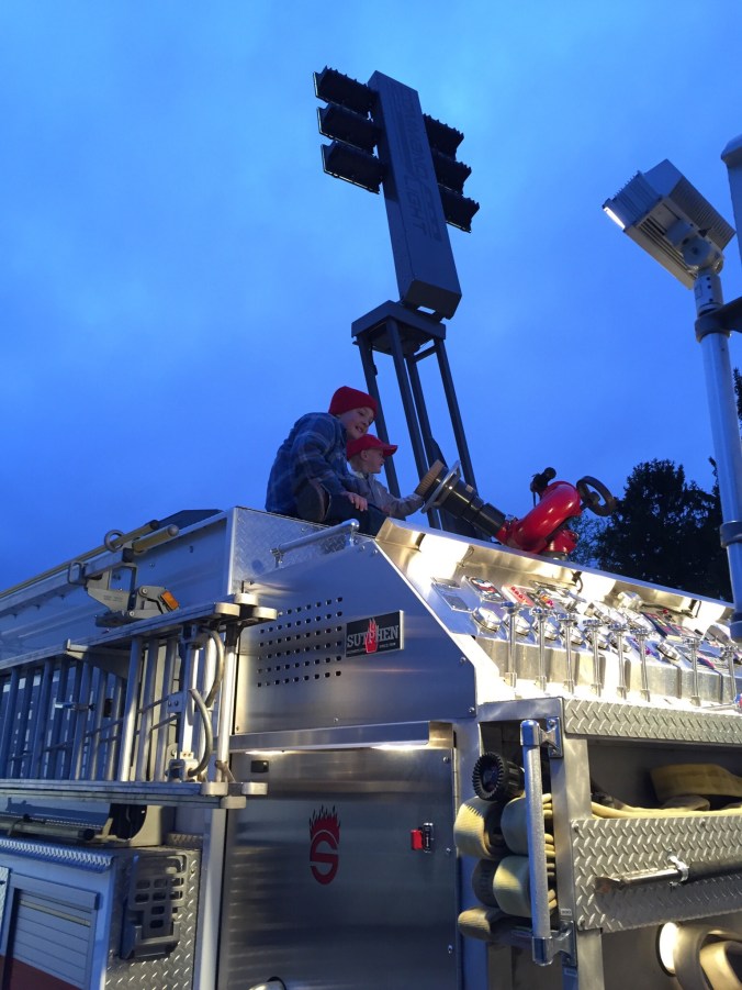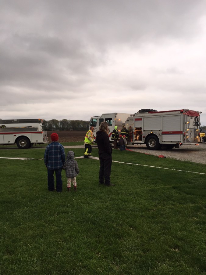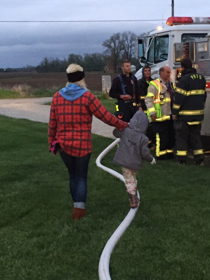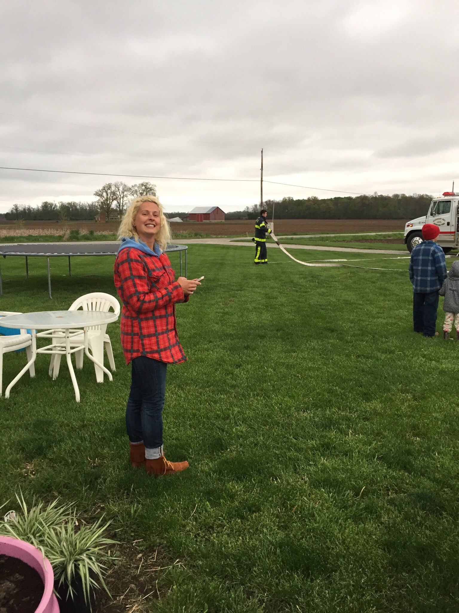 We upgraded our pool this year. Because we went bigger we didn’t want to fill it with our well, so I looked into other options. Evidently in some areas the local fire department will come out and fill your pool! Awesome! My husbands son, uncle and cousin are all on the Pleasant Hill fire department so we put in a call to them. They said for a donation they would come out and asked if they could use it as a drill!!! Perfect! We said of course, that would be great! We sat out that evening in the yard awaiting the fire trucks. Such a strange feeling waiting with excitement for fire trucks to show up to your house. Especially after we watched our neighbors house burn just this past winter. I figure it’s not to often that they pull up somewhere to smiling faces, so that’s probably a nice change of pace.