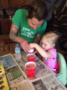 On Easter a bunch of the family gets together and enjoys a huge meal and egg hunts. But this year I added something new, an adult egg hunt!!! I found a bunch of giant eggs and filled them with tiny bottles of liquor!! Everyone loved it!!