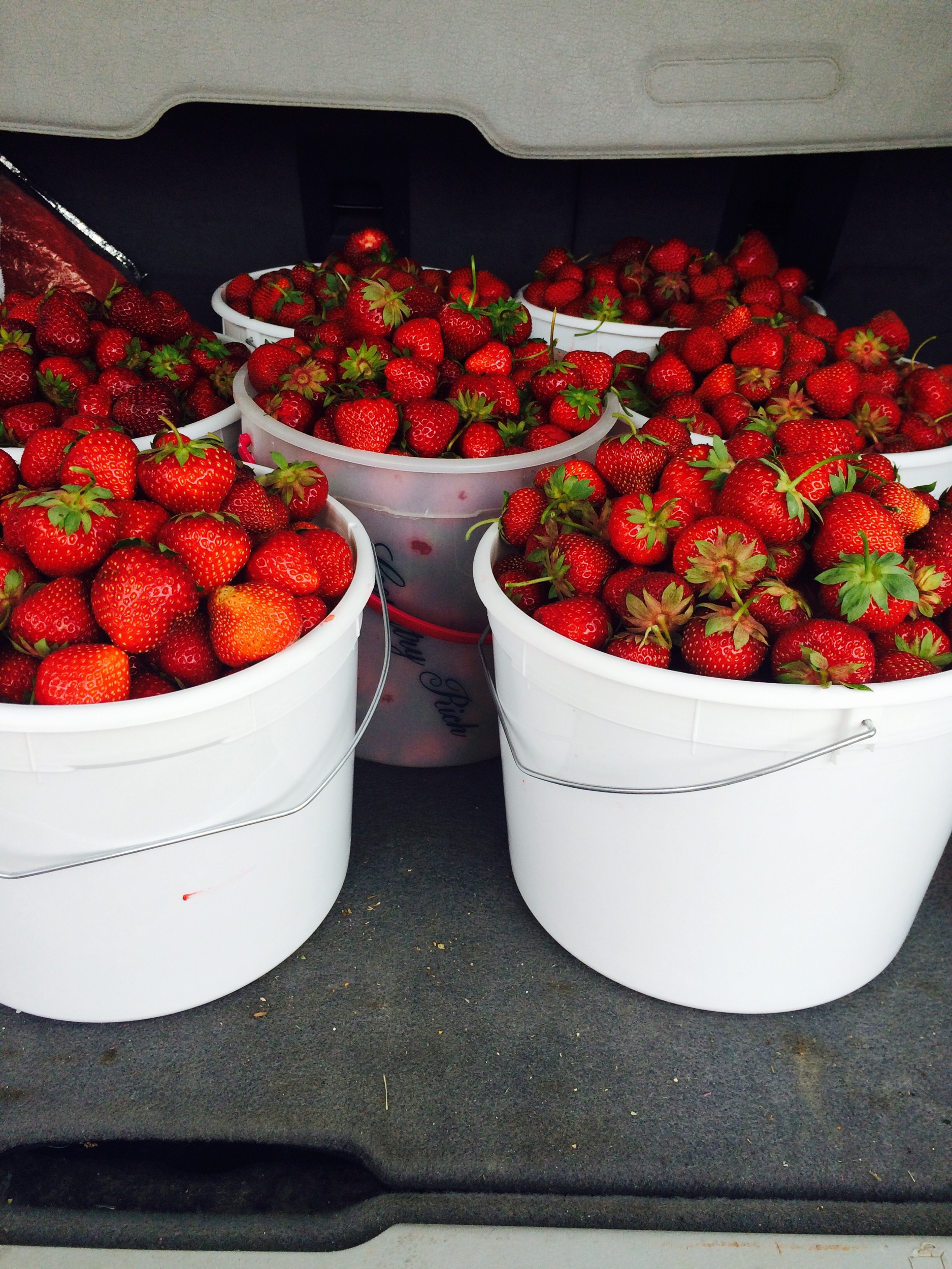 We picked 7, 1 gallon buckets full of strawberries!!!! My Jeep smelled so good on the ride home!