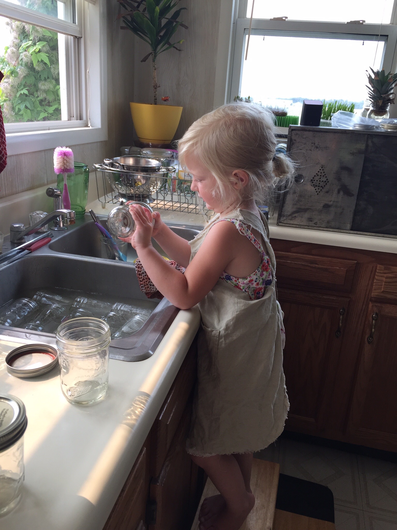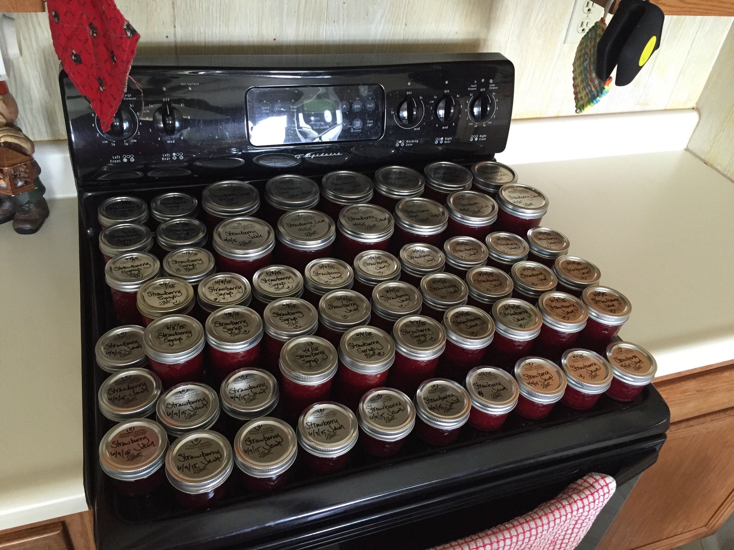 Growing up, mom would take me and my brother strawberry pickin at Fulton Farms. We made freezer jam with them a few times but I don’t remember much about it. Mom and I have taken my kids a few times to pick but this year we kicked it up a few notches! On a Monday morning mom, Peyton, Edyth, me and my cousin Katey loaded up in my Jeep and headed to Fulton Farms with intentions of picking lots of strawberries and coming home to can strawberry jam. We had a blast picking!